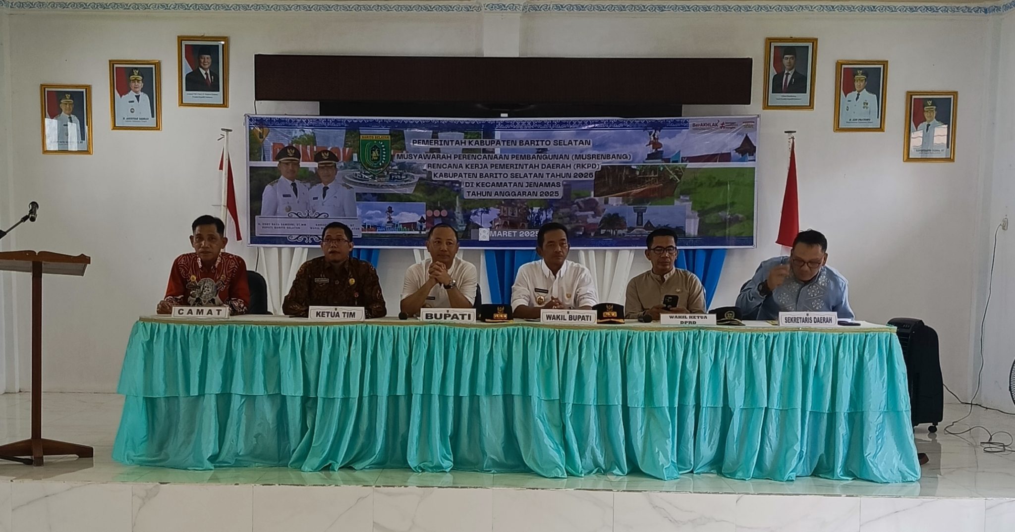 Rantau Kujang – Pemerintah Kabupaten (Pemkab) Barito Selatan. Bupati dan Wakil Bupati H. Eddy Raya Syamsuri, ST,.MM. dan Kristanto Yudha, ST. menghadiri Musyawarah Perencanaan Pembangunan (Musrenbang) Rencana Kerja Pemerintah Daerah (RKPD) Kabupaten Tahun 2026 di Kecamatan Jenamas, dibuka secara resmi oleh Bupati di aula Kecamatan, Sabtu (08/03/2025).