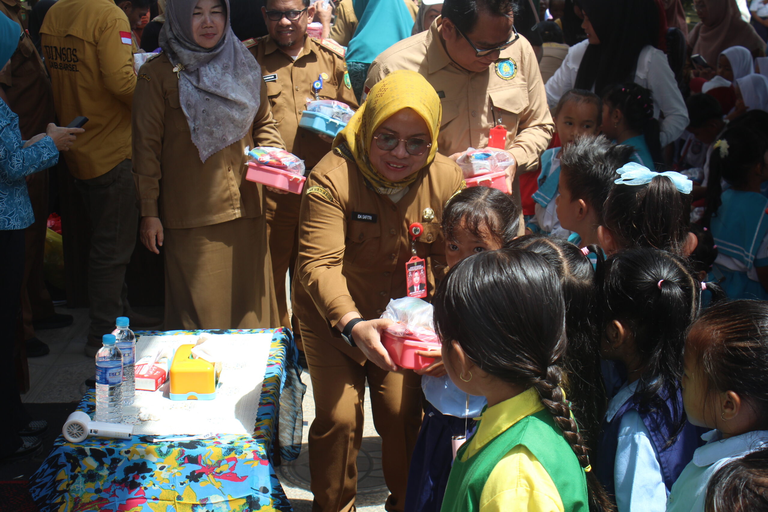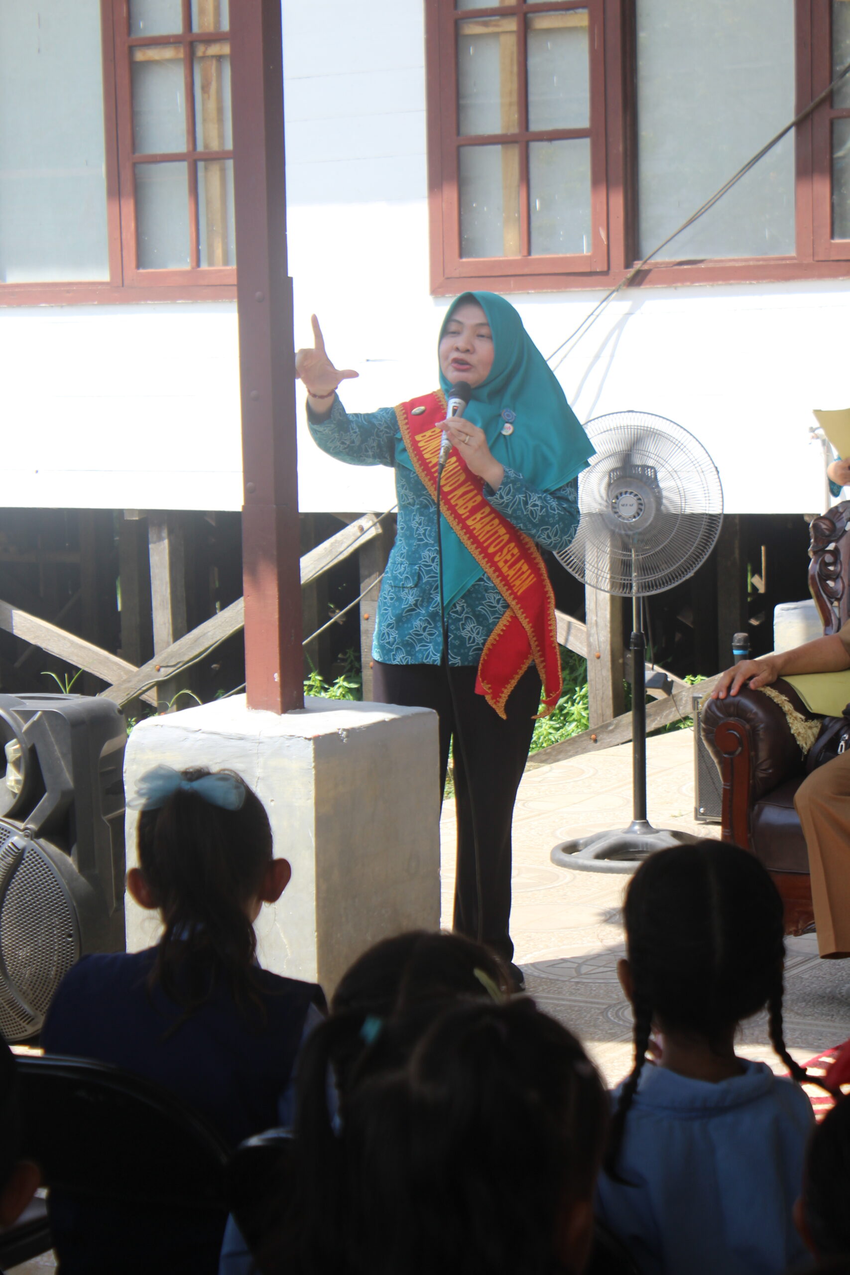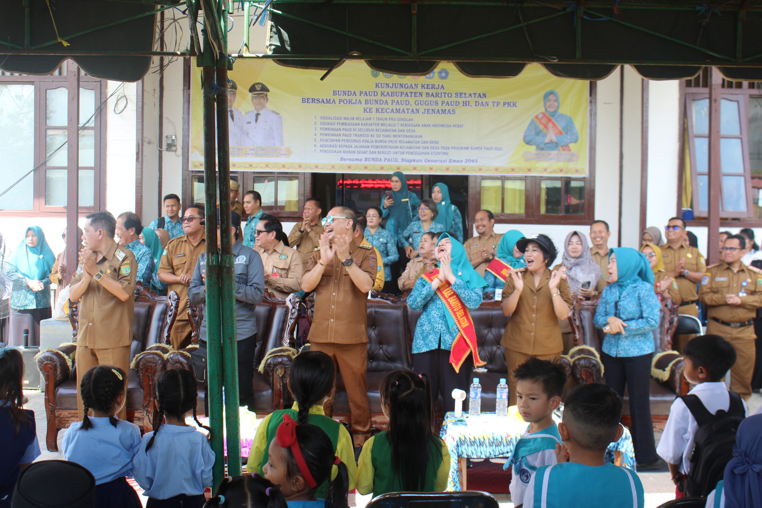 Kegiatan ini juga dihadiri Bupati Barito Selatan, H. Eddy Raya Samsuri, ST., MM., yang menyampaikan pentingnya pendidikan usia dini sebagai pondasi pembentukan karakter bangsa. Sebagai wujud kepedulian pemerintah daerah, Bupati turut menyerahkan bekal dan mainan pembelajaran interaktif kepada anak-anak TK, yang disambut antusias oleh peserta.