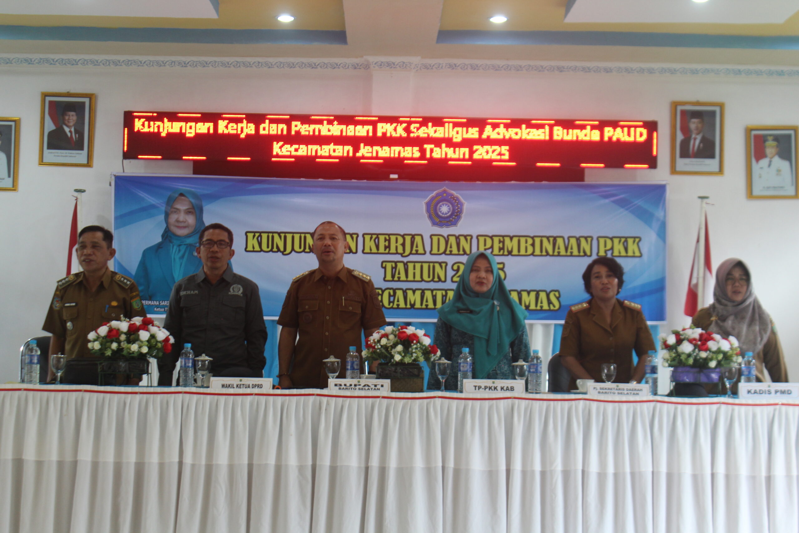 Kegiatan yang dihadiri para pemangku kepentingan tersebut dipimpin langsung oleh Ibu Hj. Permanasari, yang memberikan arahan dan motivasi bagi para kader PKK serta para pendidik dan Bunda PAUD di wilayah Kecamatan Jenamas.
